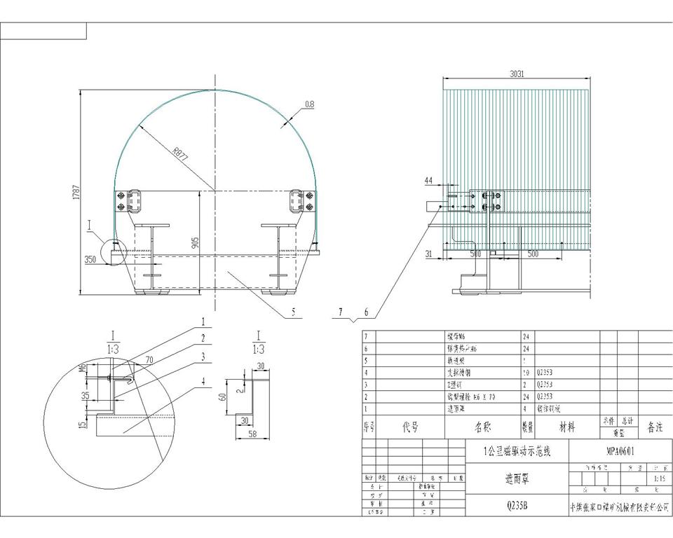 四种形式的输送机防雨罩中,固定罩和开闭式罩均由镀锌瓦楞钢板或彩色涂层钢板制成,一般每10个罩位中设9个固定罩、1个开闭式罩,也可两种罩交替排列。安装时,将开闭式罩压在左右两个相邻的固定式罩上,其重合长度为一个波距或两个波距。注意将开闭式罩有铰链的一侧置于输送机非通行边,而将有锁扣的一侧置于输送机通行边。